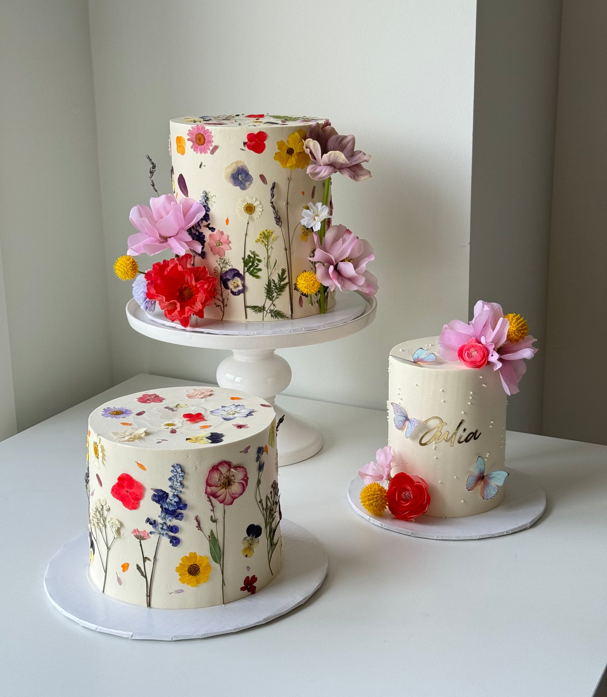 faux flowers on the side are not included in price below- please make note in check out if youd like real or faux florals and I will send you a custom quote based on the size of cake selected